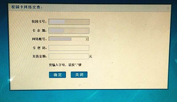 选择“网络交费”选项将进入用户账号充值界面,选择“重置网络密码”和“重置邮箱密码”选项将进入用户账号和电子邮箱密码重置界面,选择“返回”选项将返回上一级菜单。
