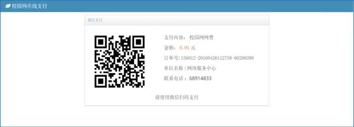 PC端网络账号缴费为校园网用户提供在线缴费功能。使用上网账号登录系统,并利用微信扫一扫支付功能,即可完成上网账号缴费。