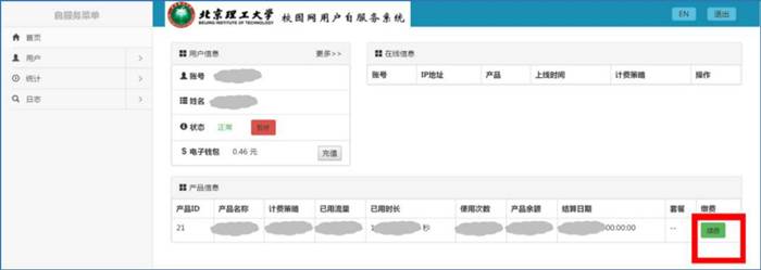 7.用户缴费是缴费到电子钱包,不能直接使用,需要由用户在自服务系统里在产品中进行“续费”,才能正常使用。