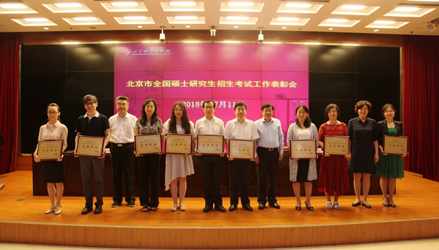 7月11日上午,北京教育考试院召开了北京市全国硕士研究生招生考试工作表彰会,北京教育考试院院长钱军、副院长许晓革、纪委书记周剑梁及北京市相关招生单位研究生招生工作负责人参加了会议。此次表彰会对近几年来在研究生招生考试工作中作出突出贡献的高校及个人进行了表彰,北理工荣获了北京市全国硕士研究生招生考试工作“先进单位”称号,研究生院薛伟、孙乐平荣获了“先进个人”称号。