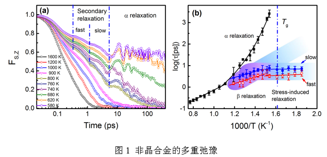 非晶态物质是一种微观结构长程无序、能量长期处于亚稳态的复杂多体相互作用体系。非晶态合金(又称金属玻璃)是50多年前发现的一类新型的非晶材料,它的发现极大丰富了金属物理的研究内容,日益成为凝聚态物理的研究前沿。非晶合金表现出很多独特的物理、化学性质,特别是块体非晶合金具有优异的力学性能,例如超高的强度和断裂韧性、高强度、低弹性模量等。块体非晶合金被认为是迄今为止发现的最强、最硬、最软、最韧的金属结构材料。尽管近年来在非晶合金方面涌现出大批的研究成果,但非晶合金中的一些基本问题仍然缺乏清晰的认识,例如非晶态转变的物理本质和非晶合金优异力学性能的物理本源等。目前的研究表明这些问题都与非晶合金中复杂的多重弛豫行为有关联。在非晶态合金形成过程中,存在长时结构弛豫与短时次级弛豫(?弛豫)并存的多重动力学行为,次级弛豫的行为表征以及微观机制是目前非晶合金研究中的关键问题。